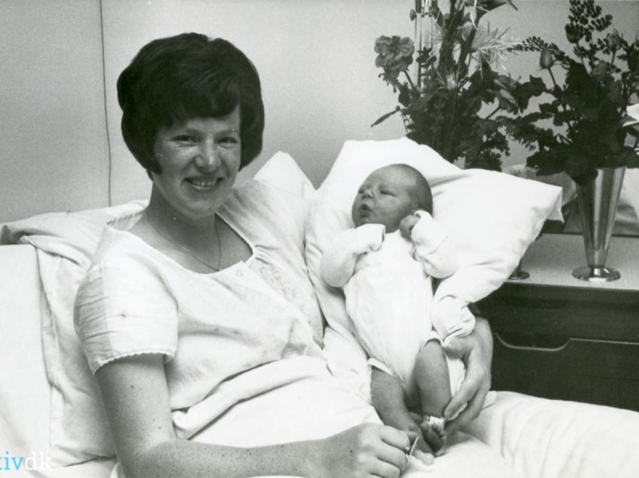 En gang om ugen kom der en fotograf fra Vanløse og tilbød at tage billeder af de nybagte mødre og deres børn. Derfor findes der mange billeder af barselsmødrene, der poserer i sengen med deres nyfødte. Her er det Ruth Mørch, der i dag er formand for seniorrådet.